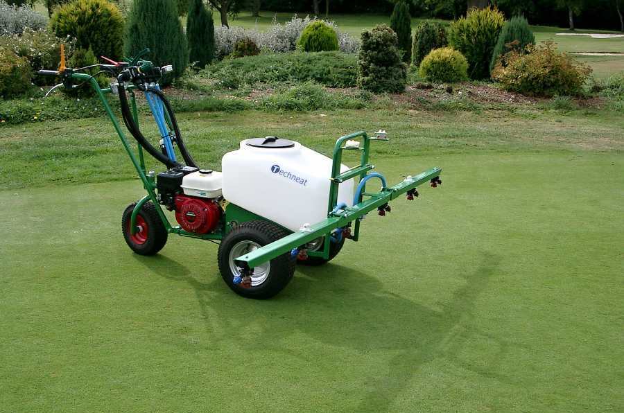 Řešením jsou výrobky Techneat, postřikovací jednotky určené pro malé i velké travnaté plochy všeho druhu jako jsou travnaté plochy zahrad rodinných domů, fotbalových, golfových a jiných hřišť. Mají schopnost přesného a rovnoměrného postřikování, jsou velmi výkonné a přitom nenáročné na obsluhu i s ohledem na fyzickou námahu. A čas k ošetření trávníkových ploch klasickými zádovými postřikovačemi je s výrobky Techneat nesrovnatelně menší a díky stopám od kol po sobě zanechávajících na trávníku nedojde k neúmyslnému vynechání lokalit, nebo naopak ke znásobené dávce.